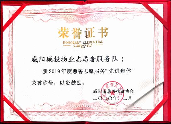 十年磨劍,劍成峰。2011年被中國物業(yè)管理行業(yè)協(xié)會授予中國物業(yè)管理誠信品牌企業(yè),2014年榮獲陜西省企業(yè)信用協(xié)會3A聯(lián)盟會員單位,2014年在國家園林城市創(chuàng)建工作中被咸陽市委、市政府評為“先進(jìn)基層單位”,2012年-2017年連續(xù)5年被上級工會授予“先進(jìn)集體”,2015年被共青團(tuán)咸陽市委授予“青年文明號”標(biāo)兵單位,2015-2017年連續(xù)3年被咸陽市扶貧協(xié)會授予“先進(jìn)集體”“會員單位”稱號,2017年度被咸陽市總工會授予“咸陽市模范職工之家”稱號。