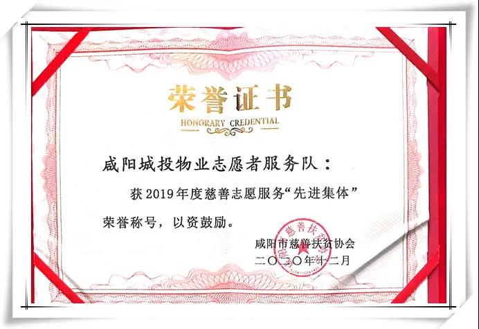12月12日,咸陽(yáng)市慈善協(xié)會(huì)第二屆第五次理事會(huì)議在粵海灣九樓會(huì)議室召開。市城投集團(tuán)獲得“2020年抗擊疫情工作先進(jìn)集體”,領(lǐng)導(dǎo)班子等多人獲得“2020年抗擊疫情工作先進(jìn)個(gè)人”榮譽(yù)表彰。咸陽(yáng)城投物業(yè)志愿服務(wù)隊(duì)獲得“2019年度慈善服務(wù)先進(jìn)集體”榮譽(yù)表彰。