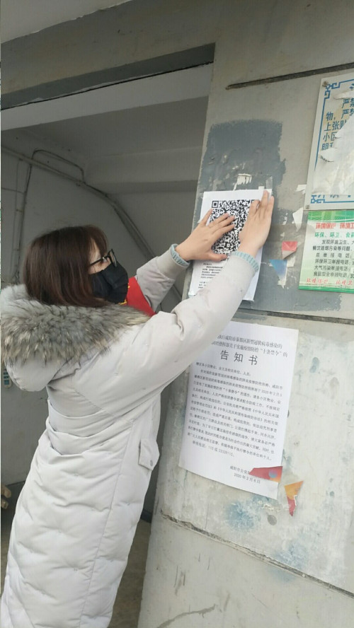 志愿者在每棟樓單元門(mén)口張貼信息填報(bào)二維碼