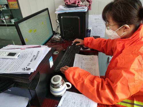 志愿者將小區(qū)業(yè)主排查情況統(tǒng)一錄入電腦